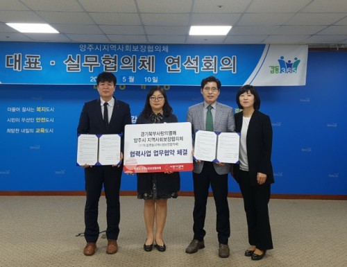 ¾çÁÖ½ÃÁö¿ª»çȸº¸ÀåÇùÀÇü(°øµ¿À§¿øÀå ¹ÚÃá¹è, ÀÌÇÏ ÇùÀÇü)´Â Áö³ 5¿ù10ÀÏ ¾çÁÖ½Ãû ´ëȸÀǽǿ¡¼ 11°³ À¾¸éµ¿Áö¿ª»çȸº¸ÀåÇùÀÇü(ÀÌÇÏ À¾¸éµ¿ÇùÀÇü), °æ±â»çȸº¹Áö°øµ¿¸ð±Ýȸ(ÀÌÇÏ ¸ð±Ýȸ)¿Í ÇÔ²² ¾çÁֽà º¹ÁöÇö¾ÈÀ» ÇØ°áÇÒ ¼ö ÀÖ´Â ±â¹ÝÀ» Á¶¼ºÇϰí Áö¿ªº¹Áö ÁõÁø ¹× ³ª´®¹®È È®»êÀ» À§ÇØ ¾÷¹«Çù¾à½ÄÀ» ü°áÇß´Ù.