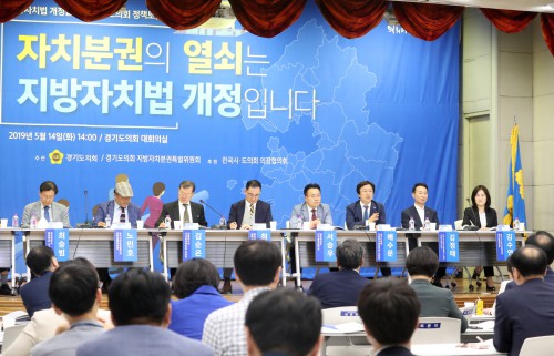 °æ±âµµÀÇȸ¿¡¼ 14ÀÏ ¿¸° 'Áö¹æÀÚÄ¡¹ý °³Á¤À» À§ÇÑ °æ±âµµÀÇȸ Á¤Ã¥Åä·Ðȸ'¿¡ Âü¼®ÇÑ ±¤¿ªÀÇ¿ø°ú ±¹È¸ÀÇ¿øµéÀÌ Áö¹æÀÇȸÀÇ Àü¹®¼º ¹× ÀÚÀ²¼º °È¸¦ À§ÇØ ‘Áö¹æÀÚÄ¡¹ý ÀüºÎ°³Á¤¾È’ÀÌ ±¹È¸¿¡¼ Á¶¼ÓÈ÷ Åë°úµÅ¾ß ÇÑ´Ù°í ÀÔÀ» ¸ð¾Ò´Ù.