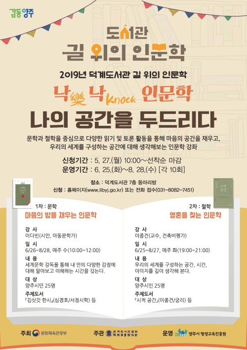 ¾çÁֽà ´ö°èµµ¼°üÀº ¿À´Â 6¿ù25ÀϺÎÅÍ 8¿ù28ÀϱîÁö 10ÁÖ°£ ±æ À§ÀÇ Àι®ÇÐ ÇÁ·Î±×·¥ ‘³«³«(äÅknock) Àι®ÇÐ: ³ªÀÇ °ø°£À» µÎµå¸®´Ù’¸¦ ¿î¿µÇÑ´Ù.