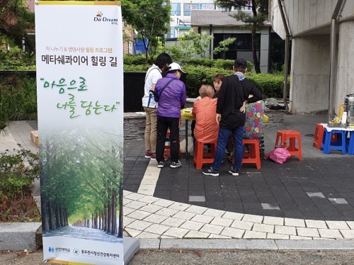 µ¿µÎõ½ÃÁ¤½Å°Ç°º¹Áö¼¾ÅÍ(¼¾ÅÍÀå ¾ÈÈñ³²)¿¡¼´Â Áö³ 7ÀÏ ¸ÞŸ½¦ÄâÀÌ¾î ±æ(¼Û³»ÁÖ°ø¾ÆÆÄÆ® 2´ÜÁö ¸ÂÀºÆí)¿¡¼ ½Ã¹ÎµéÀÌ ¸ÞŸ½¦ÄâÀÌ¾î ±æÀ» »êÃ¥ÇÏ¸ç ½É½Å ¾ÈÁ¤À» ÅëÇØ ½ºÆ®·¹½º¸¦ ¿ÏÈÇÏ°í ±àÁ¤Àû »îÀ» ÁöÇâÇϰíÀÚ“¸¶À½À¸·Î ³Ê¸¦ ´ã´Â´Ù” ÇÁ·Î±×·¥À» ÁøÇàÇÏ¿´´Ù.