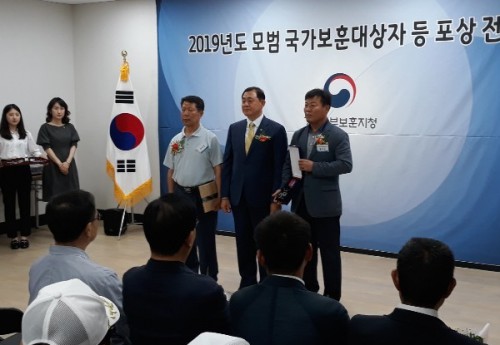 °æ±âºÏºÎº¸ÈÆÁöû(ÁöûÀå ±èÀåÈÆ)Àº 6¿ù27ÀÏ ÀÇÁ¤ºÎº¸ÈÆÈ¸°ü¿¡¼ ¿¸° “2019³âµµ ¸ð¹ü±¹°¡À¯°øÀÚ Æ÷»ó Àü¼ö½Ä”¿¡¼ È£±¹º¸ÈÆÀÇ ´ÞÀ» ¸Â¾Æ Æò¼Ò º¸Èư¡Á·ÀÇ º¹ÁöÁõÁø¿¡ Èû½á¿Â ÀÇÁ¤ºÎ³ª´®Ã౸ºÀ»ç´Ü(´ÜÀå Ȳ¼®Áø)¿¡°Ô ±¹°¡º¸ÈÆÃ³Àå °¨»çÆÐ¸¦ Àü¼öÇÏ¿´´Ù.
