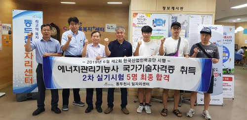 µ¿µÎõ½Ã ÀÏÀÚ¸®¼¾ÅÍ¿¡¼´Â Çѱ¹»ê¾÷Àη°ø´Ü¿¡¼ ½ÃÇàÇÑ 2019³â Á¦2ȸ ¿¡³ÊÁö°ü¸®±â´É»ç ±¹°¡±â¼úÀÚ°Ý ½Ç±â½ÃÇè¿¡¼ ¼¾ÅÍ ¼Ò¼Ó ÀÀ½ÃÀÚ 13¸í Áß 5¸íÀÌ ÃÖÁ¾ÀûÀ¸·Î ÇÕ°ÝÇÏ´Â ¼º°ú¸¦ ¿Ã·È´Ù.