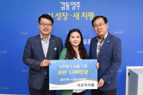 ¾çÁֽà »ç±ºÀÚ½Äǰ(´ëÇ¥ ¹Ú¼¿¬)Àº Áö³ 4ÀÏ ¾çÁÖ½ÃûÀ» ¹æ¹®ÇØ °ü³» ¾î·Á¿î ÀÌ¿ôÀ» µ½´Âµ¥ ½á´Þ¶ó¸ç ¼ÛÆí 1000ÀκÐ(480¸¸¿ø »ó´ç)À» ±âºÎÇß´Ù.