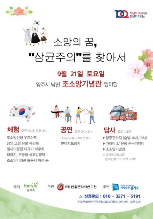 ¾çÁÖ½Ã(½ÃÀå À̼ºÈ£)´Â ¿À´Â 9¿ù21ÀÏ Á¶¼Ò¾Ó±â³ä°ü¿¡¼ ‘¼Ò¾ÓÀÇ ²Þ, »ï±ÕÁÖÀǸ¦ ã¾Æ¼’¸¦ Å׸¶·Î ´Ùä·Î¿î üÇèÇÁ·Î±×·¥À» ¿î¿µÇÑ´Ù.