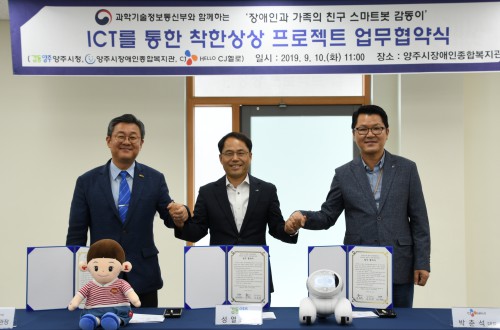 ½Ã´Â 9¿ù10ÀÏ ¾çÁÖ½ÃÀå¾ÖÀÎÁ¾ÇÕº¹Áö°ü, CJÇï·Î¿Í ÷´Ü ICT¸¦ ÅëÇÑ ÂøÇÑ»ó»óÇÁ·ÎÁ§Æ® ‘Àå¾ÖÀΰú °¡Á·ÀÇ Ä£±¸ ½º¸¶Æ®º¿ °¨µ¿ÀÌ’ »ç¾÷ÀÇ ¼º°øÀûÀÎ ¼öÇàÀ» À§ÇÑ ¾÷¹« Çù¾à½ÄÀ» °³ÃÖÇß´Ù.