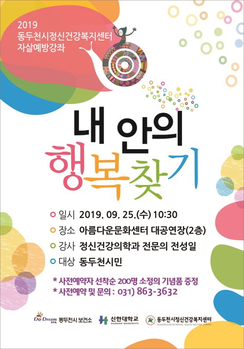 À̹ø °Á´ µ¿µÎõ½Ã¹ÎÀÇ ÇູÇÏ°í °Ç°ÇÑ »îÀ» À§ÇØ Á¤½Å°Ç°ÀÇÇаú Àü¹®ÀÇ Àü¼ºÀÏ °»ç°¡ ‘³» ¾ÈÀÇ Çູã±â’¶ó´Â ÁÖÁ¦·Î °ÀǸ¦ ÁøÇàÇÒ ¿¹Á¤À̸ç, À̸¦ ÅëÇØ¼ »ý¸íÀÇ Àǹ̸¦ »ó±â½Ã۰í, ÇູÁö¼ö¸¦ ³ôÀ̴µ¥ ±â¿©ÇϰíÀÚ ÇÑ´Ù.