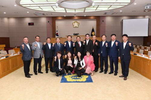¾çÁÖ½ÃÀÇȸ ÀÇ¿ø°ú ¸ù°ñ ¹Ù¾çÈ«°í¸£ ¾ÆÀ̸· ¹æ¹®´ÜÀÌ °£´ãȸ¸¦ ³¡³½ µÚ, ½ÃÀÇȸ º»È¸ÀÇÀå¿¡¼ ±â³äÃÔ¿µÀ» Çϰí ÀÖ´Ù.