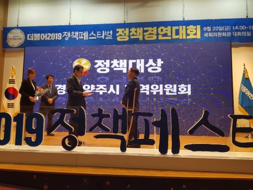 ´õºÒ¾î¹ÎÁÖ´çÀÌ 9¿ù20ÀÏ ±¹È¸ ÀÇ¿øÈ¸°ü ´ëȸÀǽǿ¡¼ °³ÃÖÇÑ ‘´õºÒ¾î2019 Á¤Ã¥Æä½ºÆ¼¹ú’¿¡¼ ¾çÁֽà Áö¿ªÀ§¿øÈ¸(À§¿øÀå Á¤¼ºÈ£ ÀÇ¿ø)°¡ ´ë»óÀ» ¼ö»óÇß´Ù.