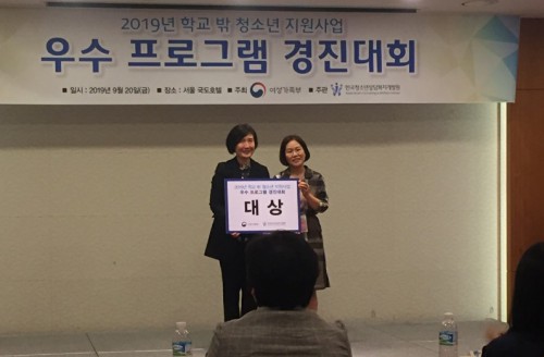 ¿ì¼± Áö³ 21ÀÏ ¼¿ï ±¹µµÈ£ÅÚ¿¡¼ ¿©¼º°¡Á·ºÎ¿Í Çѱ¹Ã»¼Ò³â»ó´ãº¹Áö°³¹ß¿øÀÌ ÁÖÃÖÇÑ ‘2019 Çб³ ¹Û û¼Ò³â Áö¿ø»ç¾÷ ¿ì¼öÇÁ·Î±×·¥ °æÁø´ëȸ’¿¡¼ ¿¬±Øµ¿¾Æ¸®ÀÎ ‘Ä¿¹Â´ÏƼÇ÷¹ÀÌ Çп¬’À¸·Î ´ë»óÀ» ¼ö»óÇß´Ù.