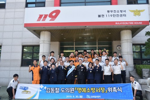 µ¿µÎõ¼Ò¹æ¼´Â Àç³ ÃÖÀϼ± ÇöÀå¿¡¼ ±Ù¹«ÇÏ´Â ¼Ò¹æ°ø¹«¿ø¿¡ °¢º°ÇÑ °ü½É°ú ¾ÖÁ¤À» °®°í ȯ°æ·Ã³¿ì °³¼±¿¡ Èû½á ¿Â ±è ÀÇ¿øÀ» À̳¯ ÀÏÀÏ ¸í¿¹¼Ò¹æ¼ÀåÀ¸·Î À§ÃËÇß´Ù.