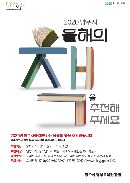 ¾çÁÖ½Ã(½ÃÀå À̼ºÈ£)´Â Ã¥À¸·Î Çϳª µÇ´Â ‘Ã¥ Àд µµ½Ã ¾çÁÖ’ Á¶¼ºÀ» À§ÇØ ¿À´Â 11¿ù8ÀϱîÁö ‘2020³â ¾çÁֽà ¿ÃÇØÀÇ Ã¥’À» Ãßõ¹Þ´Â´Ù.