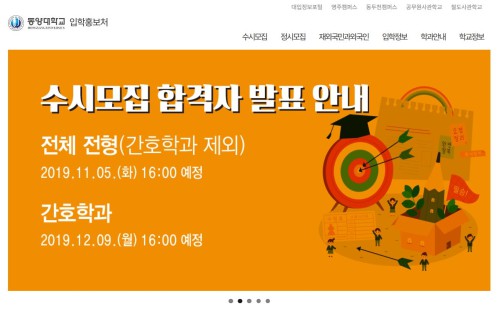 µ¿¾ç´ëÇб³ ¿À´Ã(5ÀÏ) ¿ÀÈÄ 16½Ã¿¡ 2020Çг⵵ ¼ö½Ã¸ðÁý ÇÕ°ÝÀÚ¸¦ ¹ßÇ¥ÇÑ´Ù.