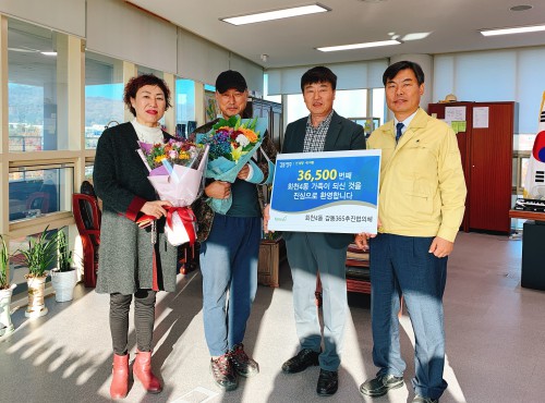 ȸõ4µ¿ °¨µ¿365ÃßÁøÇùÀÇü(À§¿øÀå Á¶¼º°æ)´Â À̳¯ 3¸¸6500¹øÂ° ÀüÀÔÀÚ¸¦ ÃàÇÏÇϱâ À§ÇØ ¾çÁÖ°ñ½Ò°ú ²É´Ù¹ß µîÀ» Àü´ÞÇÏ´Â µî ȯ¿µ Çà»ç¸¦ °¡Á³´Ù.