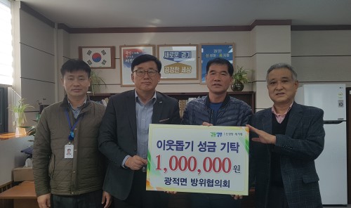 ¾çÁֽà ±¤Àû¸é ¹æÀ§ÇùÀÇȸ(ȸÀå Ȳµ·ÁÖ, ºÎȸÀå ±è±¤¼ö)´Â Áö³ 7ÀÏ ±¤Àû¸éÇàÁ¤º¹Áö¼¾ÅÍ(¸éÀå À±Èï¼ö)¸¦ ¹æ¹®, ÀÌ¿ôµ½±â ¼º±Ý 100¸¸¿øÀ» ±âŹÇß´Ù.