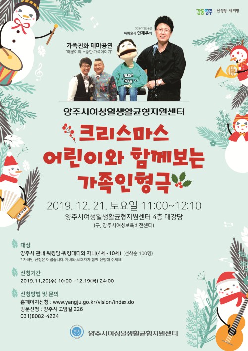 ‘Å©¸®½º¸¶½º ¾î¸°ÀÌ¿Í ÇÔ²² º¸´Â °¡Á·ÀÎÇü±Ø-¸Þ·ÕÀÌÀÇ ¼ÒÁßÇÑ °¡Á·À̾߱⒴ 12¿ù21ÀÏ ¿©¼ºÀÏ‧»ýȰ±ÕÇüÁö¿ø¼¾ÅÍ 4Ãþ ´Ù¸ñÀû½Ç¿¡¼ ÁøÇàÇÏ¸ç °¡Á·ÀÇ ¼ÒÁßÇÔÀ» Àϱú¿ì°í »ç¶ûÀ» ½ÇõÇÏ´Â °¡Á·Ä£È ÀÎÇü±ØÀ» º¹È¼úÀÇ ´ë°¡ÀÎ ±Ø´Ü Ä£±¸ ¾ÈÀç¿ì ¼ÒÀåÀÌ °ø¿¬ÇÒ ¿¹Á¤ÀÌ´Ù. Âü°¡¸¦ ¿øÇÏ´Â »ç¶÷Àº ³»´Þ 19ÀϱîÁö ¼±Âø¼øÀ¸·Î ȨÆäÀÌÁö ¶Ç´Â ¹æ¹® Á¢¼öÇÏ¸é µÈ´Ù.