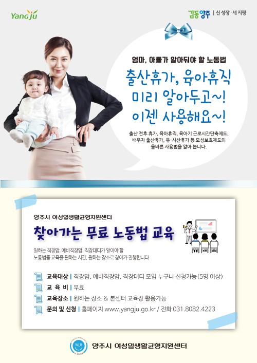 ‘ã¾Æ°¡´Â ¹«·á ³ëµ¿¹ý ±³À°’Àº ¿À´Â 11¿ù29ÀÏ, 12¿ù13ÀÏ µÎ Â÷·Ê¿¡ °ÉÃÄ Á÷À帾ÀÇ °æ·Â´ÜÀý ¿¹¹æ°ú Á÷Àå º¹±Í¿¡ µµ¿òÀÌ µÇ´Â ³ëµ¿¹ý·ü ±³À°(Ãâ»êÈÞ°¡, À°¾ÆÈÞÁ÷ µî)À» ¿øÇÏ´Â ½Ã°£, ¿øÇÏ´Â Àå¼Ò·Î ã¾Æ°¡ ÁøÇàÇÏ´Â ÇÁ·Î±×·¥À¸·Î °ü³» »êÈÄÁ¶¸®¿ø ¹æ¹® ±³À°À¸·Î ½Ã¹ü¿î¿µÀ» ½ÃÀÛÇÑ´Ù.