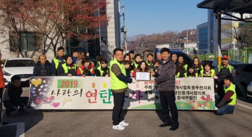 ¸ÅÇØ °Ü¿ï ¾î·Á¿î ÀÌ¿ôµéÀ» À§ÇØ ¿¬Åº ºÀ»ç¸¦ ÇÏ´Â Çѱ¹°øÀÎÁß°³»çÇùȸ µ¿µÎõ½ÃÁöȸ ȸ¿øµéÀº Á÷Á¢ 2,000ÀåÀÇ ¿¬ÅºÀ» ¹è´ÞÇÏ¸ç ¾î·Á¿î ÀÌ¿ô°ú ÈÆÈÆÇÑ ¿Â±â¸¦ ³ª´©´Â ½Ã°£À» °¡Á³´Ù.