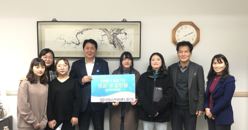 ¾Õ¼ Áö³ 11¿ù27ÀÏ¿¡´Â ¾çÁÖ½Ãû¼Ò³âÁö¿ø¼¾ÅÍ ²Þµå¸²(¼¾ÅÍÀå ÀÌ»óÇö)ÀÌ ½Ç¹°°æÁ¦Ã¼Çè ‘»·»·ºñÁî(Fun Fun Biz)’¿¡¼ ¾òÀº ¼öÀÍ±Ý 50¸¸¿øÀ» ±âºÎÇß´Ù.