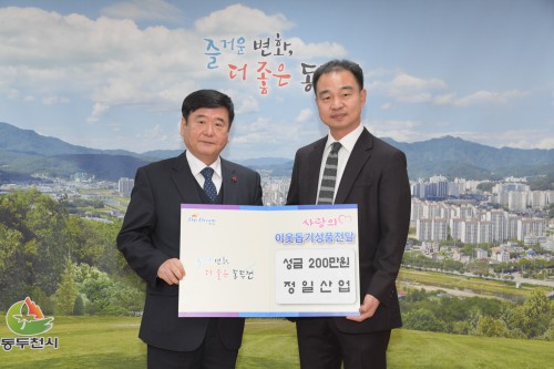 Á¤ÀÏ»ê¾÷(´ëÇ¥ À±Àç¼®)Àº Áö³ 11ÀÏ µ¿µÎõ½ÃûÀ» ¹æ¹®ÇÏ¿© °ü³» Àú¼ÒµæÃþÀ» À§ÇÑ 2019 µû¶æÇÑ °Ü¿ï³ª±â ‘»ç¶ûÀÇ ¿¬Åº ³ª´©±â Àü´Þ½Ä’À» ÇÏ¸é¼ ¼º±Ý 200¸¸¿øÀ» Àü´ÞÇß´Ù.