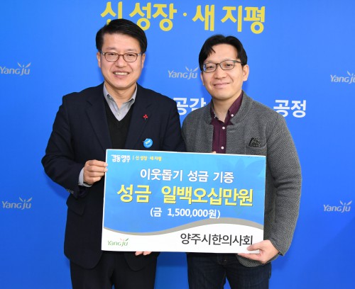 ½Ã¹Î º¸°Ç Çâ»óÀ» À§ÇØ ³ë·ÂÇϰí ÀÖ´Â ¾çÁÖ½ÃÇÑÀÇ»çȸ(ȸÀå ¾çÁ¤¹Î)¿Í À½½Ä¹®È°³¼±»ç¾÷¿¡ ¾ÕÀå¼°í ÀÖ´Â (»ç)Çѱ¹¿Ü½Ä¾÷Áß¾Óȸ °æ±âµµÁöȸ ¾çÁÖ½ÃÁöºÎ(ÁöºÎÀå ÃÖ¿îÁø)´Â Áö³ 19ÀÏ ½ÃûÀ» ¹æ¹®ÇØ °ü³»ÀÇ »ýȰÀÌ ¾î·Á¿î ÀÌ¿ôµéÀ» À§ÇØ ½á´Þ¶ó¸ç °¢°¢ 150¸¸¿ø°ú 100¸¸¿øÀÇ ¼º±ÝÀ» Àü´ÞÇß´Ù.