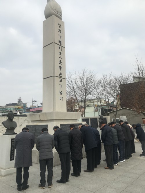 ¾çÁÖ °¡·¡ºñ 3.1¿îµ¿ ¼ø±¹ ±â³äºñ Âü¹è Çà»ç´Â 1919³â ÀÏÁ¦¿¡ ´ëÇ×ÇØ µ¶¸³¿îµ¿À» ÇÏ´Ù°¡ ¿Öº´ÀÇ ÃÑź¿¡ ¸Â¾Æ Èñ»ýÇÑ ¼ø±¹¼±¿°ú È£±¹¿µ·ÉÀÇ Èñ»ýÁ¤½ÅÀ» ±â¸®°í, »õÇØ¿¡µµ ±¤Àû¸é¹ÎµéÀÇ °¡½¿ ¼Ó¿¡ ¼þ°íÇÑ ¾Ö±¹Á¤½ÅÀ» ÀØÁö ¾Ê°Ú´Ù´Â ÀÇÁö¸¦ ´ÙÁö±â À§ÇØ ¸¶·ÃÇß´Ù.