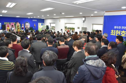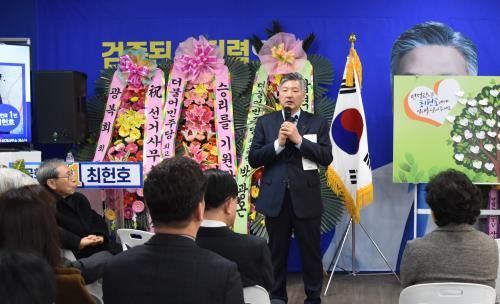 ÃÖÇåÈ£(52) ´õºÒ¾î¹ÎÁÖ´ç µ¿µÎõ·¿¬Ãµ ¿¹ºñÈ帰¡ 1¿ù18ÀÏ 500¿©¸íÀÇ ÁöÁöÀÚµé°ú ÇÔ²² ¼±°Å»ç¹«¼Ò °³¼Ò½ÄÀ» ¼ºÈ²¸®¿¡ °³ÃÖÇß´Ù. °³¼Ò½ÄÀº ‘ÃÖÇåÈ£, ¸éÁ¢ º¸´Â ³¯’À̶ó´Â ÀÌ»ö ÁÖÁ¦·Î ÁغñÇß´Ù.