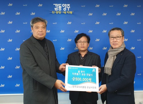 ½Ã¿¡ µû¸£¸é Áö³ 22ÀÏ ¾çÁÖ·ÎÅ͸®Å¬·´ Àº³²¼®Âùȸ(ȸÀå ±èÀ±º¹)¿¡¼ ÀºÇö¸éÇàÁ¤º¹Áö¼¾ÅÍÀ» ¹æ¹®, °ü³» ¼Ò¿ÜµÇ°í ¾î·Á¿î ºÒ¿ìÀÌ¿ôÀ» µ½´Âµ¥ ½á´Þ¶ó¸ç ¼º±Ý 50¸¸¿øÀ», ÀºÇö¸é Á¥¼Ò´É·Â°ËÁ¤È¸(ȸÀå ½Å°æ¼·)¿¡¼ »ç¶ûÀÇ ¸ê±Õ¿ìÀ¯ 88¹Ú½ºÀ» ±âºÎÇß´Ù.