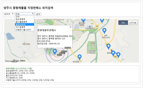 Áöµµ°Ë»ö½Ã½ºÅÛ(https://yj.yjfmc.or.kr/map/findStore.html)Àº Á¢¼ÓÇÏ´Â Áï½Ã ³» ÁÖº¯ÀÇ Á¾·®Á¦ºÀÅõ ÁöÁ¤ÆÇ¸Å¼ÒÀÇ Áöµµ¸¦ °Ë»öÇϰí ÃÖ±Ù Á¾·®Á¦ºÀÅõ ÆÇ¸Å ³»¿ªÀ» ½Ç½Ã°£À¸·Î È®ÀÎÇÒ ¼ö ÀÖ´Â ½Ã½ºÅÛÀÌ´Ù.
