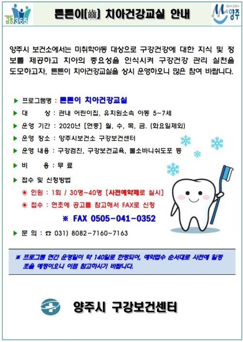 ¾çÁÖ½Ã(½ÃÀå À̼ºÈ£)´Â ¿À´Â 3¿ùºÎÅÍ ¾çÁֽà ±¸°º¸°Ç¼¾ÅÍ¿¡¼ ‘ưưÀÌ Ä¡¾Æ°Ç° ±³½Ç’À» ¿î¿µÇÑ´Ù°í 7ÀÏ ¹àÇû´Ù.