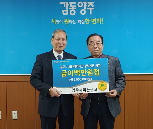¾çÁֽà Èñ¸ÁÀåÇÐÀç´Ü(ÀÌ»çÀå ÀÓÃæºó)Àº Áö³ 19ÀÏ ¾çÁÖ »õ¸¶À»±Ý°í(ÀÌ»çÀå ¹Ú½ÂÅÂ)¿¡¼ ÀåÇÐ±Ý 2¹é¸¸¿øÀ» ±âºÎÇß´Ù°í ¹àÇû´Ù.