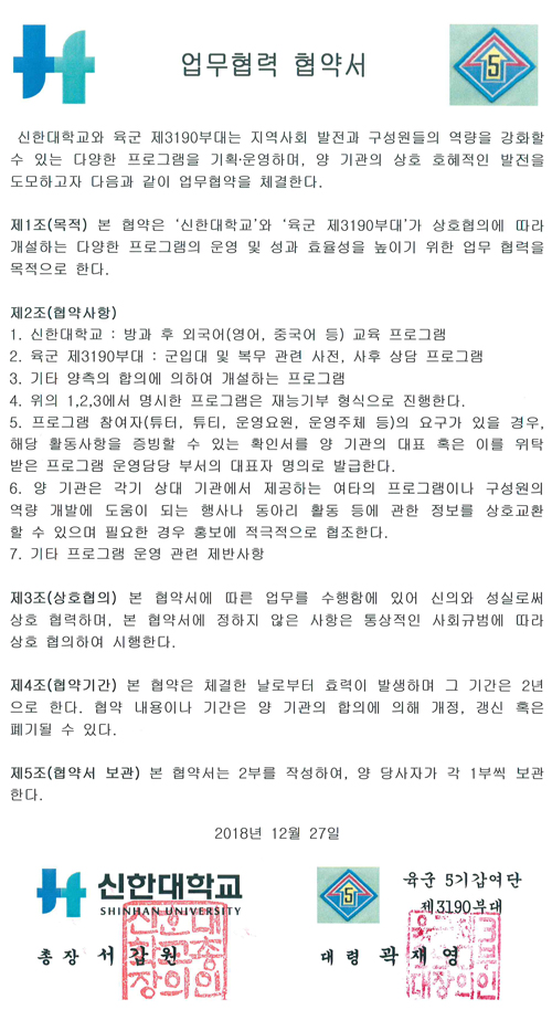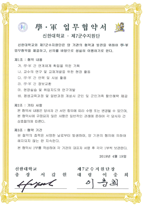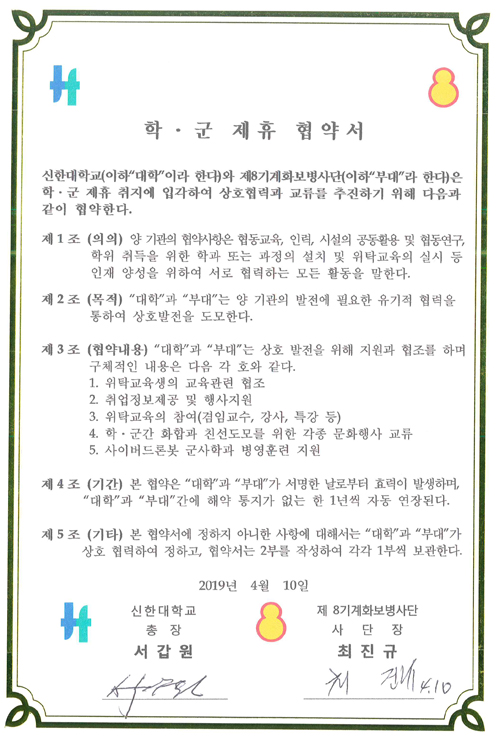 ½ÅÇÑ´ëÇб³(ÃÑÀå °¼ºÁ¾)¿Í °æ±âºÏºÎ Áö¿ª ±ººÎ´ëÀÇ Çз±º À¯´ë°ü°è°¡ °¥¼ö·Ï È®´ëµÇ°í ÀÖ´Ù. ½ÅÇÑ´ë¿Í 1, 2±º´ÜÀÇ À¯´ë°ü°è´Â ±¹¹æ°æ¿µ·¾Èº¸°æ¿µ±³À°°ú ÀμºÇÔ¾çÀ» Áß½ÉÀ¸·Î ÁøÇàµÇ¾î ±ºÀÇ »ç±â¾Ó¾çÀº ¹°·Ð ÀüÅõ·Â Çâ»ó¿¡ Å« ¸òÀ» ÇÑ´Ù´Â Æò°¡¸¦ ¹Þ°í ÀÖ´Ù.