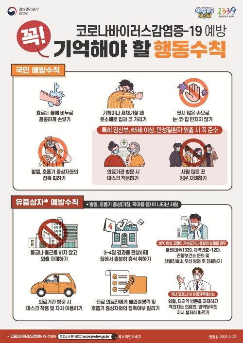 ÀÏ¹Ý ±¹¹ÎÀº ¡ãÈ帣´Â ¹°¿¡ ºñ´©·Î ²Ä²ÄÈ÷ ¼Õ ¾Ä±â ¡ã±âħ·Àçä±â ½Ã ¿Ê¼Ò¸Å·Î ÄÚ¿Í ÀÔ °¡¸®±â ¡ã¾ÄÁö ¾ÊÀº ¼ÕÀ¸·Î ´«·ÄÚ·ÀÔ ¸¸ÁöÁö ¾Ê±â ¡ãÀÇ·á±â°ü ¹æ¹® ½Ã ¸¶½ºÅ© Âø¿ë ¡ã»ç¶÷ ¸¹Àº Àå¼Ò ¹æ¹® ÀÚÁ¦ ¡ã¹ß¿·È£Èí±â Áõ»óÀÌ ÀÖ´Â »ç¶÷°ú Á¢ÃË ÇÇÇϱ⠵îÀ» ÁؼöÇØ¾ß ÇÑ´Ù.