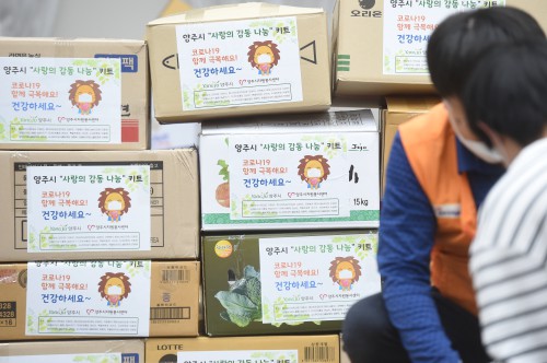 ¾çÁÖ½ÃÀÚ¿øºÀ»ç¼¾ÅÍ(¼¾ÅÍÀå ¹ÚÁ¾¼º)´Â Áö³ 25ÀÏ Äڷγª19 ±Øº¹À» À§ÇØ °ü³» Ãë¾à°èÃþ¿¡°Ô °¨µ¿³ª´® »ýÇÊǰ ŰƮ 220¹Ú½º¸¦ Àü´ÞÇß´Ù.