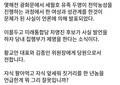 ±×·¯¸é¼ “¹Ì·¡ÅëÇÕ´ç Â÷¸íÁø È帰¡ »ç½Ç ¹ß¾ðÀ» ÇÏÀÚ ´ç³» ÁýÇàºÎ°¡ Á¦¸íÇÑ´Ù´Â ¼Ò½ÄÀÌ´Ù. ÀÚ½Ä ÆÈ¾Æ¸Ô°í ÀÚ½Ä ¾Õ¼¼¿ö Áþ°Å¸®¸¦ ÇÑ ³â³ðÀ» ¾ð±ÞÇÑ °Ô ¹¹°¡ À߸øÀΰ¡?”¶ó°í ¸·¸»À» ÆÛºÎ¾ú´Ù.