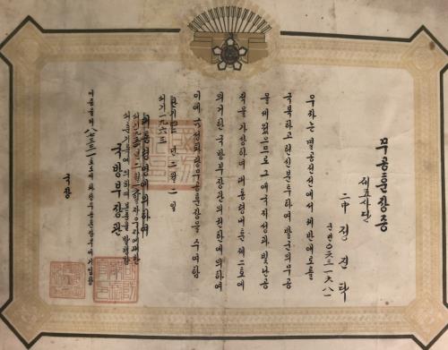 Á¤¼ºÈ£ Èĺ¸ ºÎÄ£ÀÇ ¹«°øÈÆÀåÁõ.