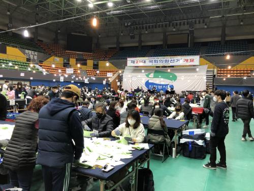 Á¦21´ë ±¹È¸ÀÇ¿øÀ» »Ì´Â 4.15 ÃѼ±ÀÌ ½Ç½ÃµÈ °¡¿îµ¥, ¿ì¸®Áö¿ª ÅõÇ¥À²Àº Àü±¹ Æò±Õ 66.2%, °æ±âµµ Æò±Õ 64.8%º¸´Ù ´Ù¼Ò ³·°Ô ³ª¿Ô´Ù. ±×·¯³ª µ¿µÎõ½Ã(Á¦16´ë ÃѼ± 60.4%)¸¦ Á¦¿ÜÇϰí ÃÖ±Ù ´Ù¼¸ ¹ø¿¡ °ÉÄ£ ¿ª´ë ÃѼ± ÅõÇ¥À²À» ³Ñ¾î¼¹´Ù.