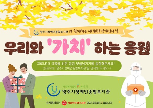 ¾çÁֽà Àå¾ÖÀÎÁ¾ÇÕº¹Áö°ü(°üÀå ±èÁ¤Èñ)Àº Á¦40ȸ Àå¾ÖÀÎÀÇ ³¯À» ¸Â¾Æ ¿À´Â 24ÀϱîÁö Àú¼Òµæ Àå¾ÖÀο¡°Ô »ýÇÊǰ¼¼Æ®¸¦ Àü´ÞÇÏ´Â '¿ì¸®¿Í ‘°¡Ä¡’ÇÏ´Â ÀÀ¿ø' Çà»ç¸¦ ÁøÇàÇÑ´Ù.