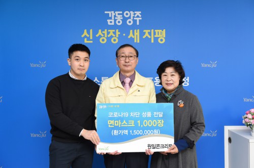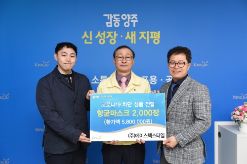 ¾çÁÖ½Ã(½ÃÀå À̼ºÈ£)´Â Áö³ 22ÀÏ °ü³» ¼ÒÀç ¿øÀÏÄÜÅ©¸®Æ®(´ëÇ¥ ±è»ê¿ø)¿¡¼ ¸é¸¶½ºÅ© 1,000ÀåÀ», ¢ß¿¡À̽ºÅؽºÅ¸ÀÏ(´ëÇ¥ °Ç屸)¿¡¼ Ç×±Õ¸¶½ºÅ© 2,000ÀåÀ» ±âºÎÇß´Ù°í ¹àÇû´Ù.