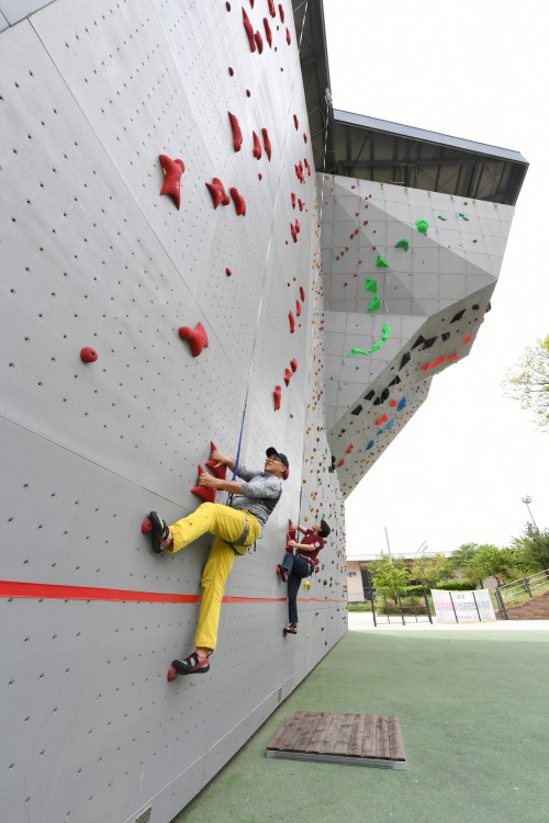 ½Ç³» ¾Ïº®ÀåÀº ³ôÀÌ 6m, Æø 10.98m¿¡ º¸Á¶ Àåºñ ¾øÀÌ ÀÚ½ÅÀÇ ÆÈ°ú ´Ù¸®·Î¸¸ ¹ÙÀ§¿¡ ¿À¸£´Â 'º¼´õ¸µ(bouldering)' Ŭ¶óÀ̹ÖÁ¸ÀÌ ¼³Ä¡µÅ ³¯¾¾¿¡ ±¸¾Ö¹ÞÁö ¾Ê°í ÄèÀûÇÏ°Ô ¿îµ¿À» Áñ±æ ¼ö ÀÖ´Ù.