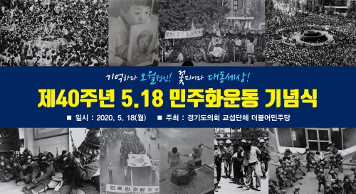°æ±âµµÀÇȸ ´õºÒ¾î¹ÎÁÖ´ç(´ëÇ¥ÀÇ¿ø ¿°Á¾Çö, ºÎõ1)Àº 5·18 ¹ÎÁÖÈ ¿îµ¿ 40ÁÖ³âÀ» ¸Â¾Æ '±â¾ïÇ϶ó ¿À¿ù Á¤½Å! ²ÉÇǾî¶ó ´ëµ¿¼¼»ó!'À̶õ ÁÖÁ¦·Î ¿µ»ó Ã߸ðÁ¦¸¦ 18ÀϺÎÅÍ ÁøÇàÇÑ´Ù.