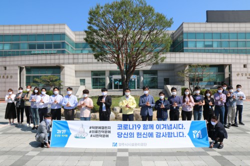 °ø´ÜÀº ±¤¸íµµ½Ã°ø»çÀÇ Áö¸ñÀ» ¹Þ¾Æ 縰Áö¿¡ Âü¿©ÇÏ¿´À¸¸ç, °ø´Ü ÀÓÁ÷¿øµéÀº ÀÇ·áÁø¿¡ ´ëÇÑ Á¸°æ°ú ÀںνÉÀ» ÀǹÌÇÏ´Â ¼ö¾î(â¢åÞ) µ¿ÀÛ°ú ÀÀ¿ø ¸Þ½ÃÁö·Î °¨»ç Àλ縦 ÀüÇß´Ù.