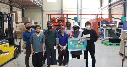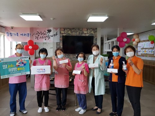 ¼¾ÅÍ´Â Äڷγª19 °¨¿° ¿¹¹æÀ» À§ÇØ Ãë¾÷ ¿©¼ºÀÌ ±Ù¹«ÇÏ´Â °ü³» ±â¾÷ 50°³¼Ò¿¡ ¶±°ú ¼Õ¼Òµ¶Á¦°¡ ´ã±ä ÀÀ¿ø¹°Ç°°ú Èñ¸Á¸Þ¼¼Áö¸¦ ºñ´ë¸é ¹è´Þ¼ºñ½º·Î Àü´ÞÇß´Ù.