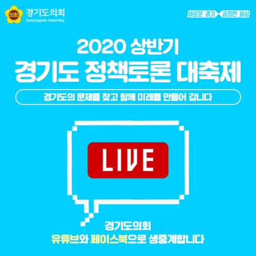 5¿ù31ÀÏ °æ±âµµÀÇȸ´Â Áö³´Þ 28ÀÏ °³È¸½ÄÀ» ½ÃÀÛÀ¸·Î ¿À´Â 7¿ù ¸»±îÁö 2´Þ°£ ÃÑ 26Â÷·Ê¿¡ °ÉÃÄ ½Ç½ÃµÇ´Â ‘Á¤Ã¥Åä·Ðȸ’¿Í °ü·Ã, ¹æÃ»°´ µî Åä·Ðȸ Âü¼®ÀοøÀ» ÃÖ¼ÒÈÇÏ´Â ´ë½Å ȸÀdz»¿ë Àüü¸¦ À¯Æ©ºê¿Í ÆäÀ̽ººÏÀ¸·Î »ýÁß°èÇÑ´Ù°í ¹àÇû´Ù.
