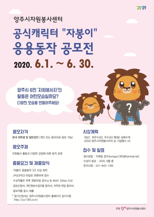 ¾çÁÖ½ÃÀÚ¿øºÀ»ç¼¾ÅÍ(¼¾ÅÍÀå ¹ÚÁ¾¼º)´Â ¿À´Â 30ÀϱîÁö ¾çÁÖÀÚºÀ ‘ÀÚºÀÀÌ’ ij¸¯ÅÍÀÇ ÀÀ¿ëµ¿ÀÛ °ø¸ðÀüÀ» ÁøÇàÇÑ´Ù.