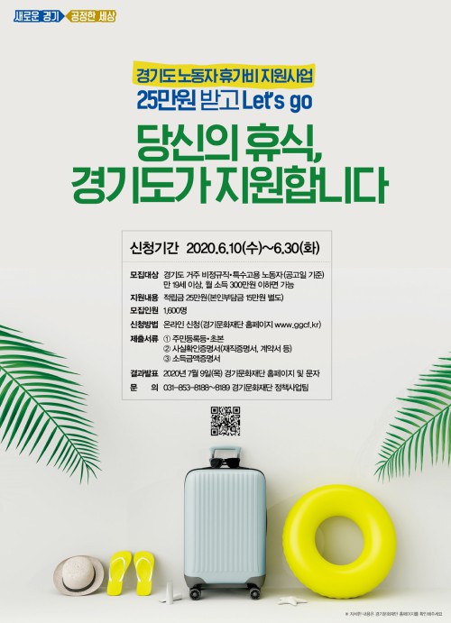 °æ±âµµ°¡ ¿ÃÇØ µµ³» ºñÁ¤±ÔÁ÷ ¶Ç´Â Ư¼ö°í¿ëÁ÷ ³ëµ¿ÀÚ 1,600¸íÀ» ´ë»óÀ¸·Î ÃÑ 4¾ï¿ø ±Ô¸ðÀÇ ÈÞ°¡ °æºñ¸¦ Áö¿øÇÏ´Â ‘°æ±âµµ ³ëµ¿ÀÚ ÈÞ°¡ºñ Áö¿ø»ç¾÷’À» ÃßÁøÇÑ´Ù°í 8ÀÏ ¹àÇû´Ù.