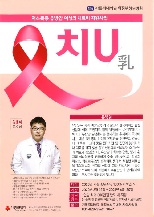 ¶ÇÇÑ, ÀÇÁ¤ºÎ¼º¸ðº´¿øÀº »çȸº¹Áö°øµ¿¸ð±ÝȸÀÇ Áö¿øÀ» ¹Þ¾Æ Àú¼Òµæ Ãë¾à¿©¼ºÀÇ À¯¹æ¾Ï Ä¡·áºñ Áö¿ø»ç¾÷ ‘Ä¡U(êá)’¸¦ ½Ç½ÃÇÑ´Ù.