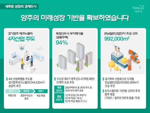 Áö³ÇØ 12¿ù ±â°ø½ÄÀ» °®°í º»°Ý ÃßÁø ÁßÀÎ 643,921§³ ±Ô¸ðÀÇ ¾çÁÖ¿ª¼¼±Ç°³¹ß »ç¾÷, 4Â÷ »ê¾÷Çõ¸íÀ» ÁÖµµÇÒ °æ±â¾çÁÖÅ×Å©³ë¹ë¸®, º¹ÇÕ¹°·ù ±â´ÉÀ» Æ÷ÇÔÇØ °æ±âºÏºÎ »ê¾÷ÃàÀ¸·Î µµ¾àÇÏ°Ô µÉ 30¸¸Æò ±Ô¸ðÀÇ Àº³²ÀϹݻê¾÷´ÜÁö µî ¾çÁÖ½ÃÀÇ ¹Ì·¡¼ºÀå ±â¹ÝÀÌ ¼Óµµ°¨ ÀÖ°Ô ÃßÁø ÁßÀÌ´Ù.
