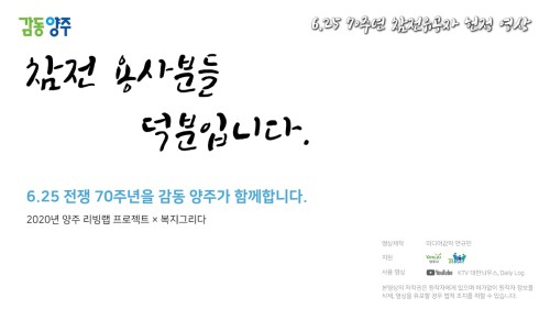 ¾çÁÖ½Ã(½ÃÀå À̼ºÈ£)´Â 6·25ÀüÀï 70ÁÖ³âÀ» ¸Â¾Æ ³ª¶ó¸¦ À§ÇØ Çå½ÅÇÑ 6.25 ÂüÀüÀ¯°øÀÚ²² Á¸°æ°ú °¨»çÀÇ ¸¶À½ÀÌ ´ã±ä ÇåÁ¤ ¿µ»ó°ú °¨»ç ÆíÁö¸¦ Àü´ÞÇß´Ù°í ¹àÇû´Ù.