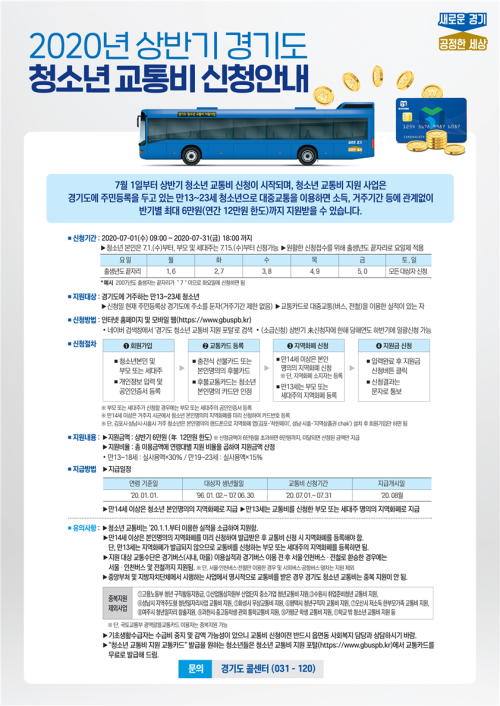 ¿À´Â 7¿ù1ÀϺÎÅÍ 31ÀϱîÁö ‘°æ±âµµ û¼Ò³â ±³Åëºñ Áö¿ø Æ÷ÅРȨÆäÀÌÁö(www.gbuspb.kr)’¸¦ ÅëÇØ ½ÅûÇÒ ¼ö ÀÖÀ¸¸ç, ¿øÈ°ÇÑ Á¢¼ö¸¦ À§ÇØ Ã»¼Ò³â º»ÀÎÀº 1ÀϺÎÅÍ, ºÎ¸ð·¼¼´ëÁÖ´Â 15ÀϺÎÅÍ °¡´ÉÇϵµ·Ï Çß´Ù.