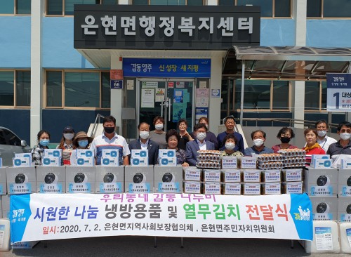 ¾çÁֽà ÀºÇö¸é Áö¿ª»çȸº¸ÀåÇùÀÇü(À§¿øÀå ¹Ú¿µÃ¶)¿Í ÁÖ¹ÎÀÚÄ¡À§¿øÈ¸(À§¿øÀå À̱¸¼ø)´Â ¿©¸§Ã¶ Æø¿°´ëºñ °ü³» µ¶°Å³ëÀÎ µî Ãë¾à°¡Á¤ 32°¡±¸¿¡ ³Ã¹æ¿ëǰ°ú ¿¹«±èÄ¡¸¦ Àü´ÞÇß´Ù.